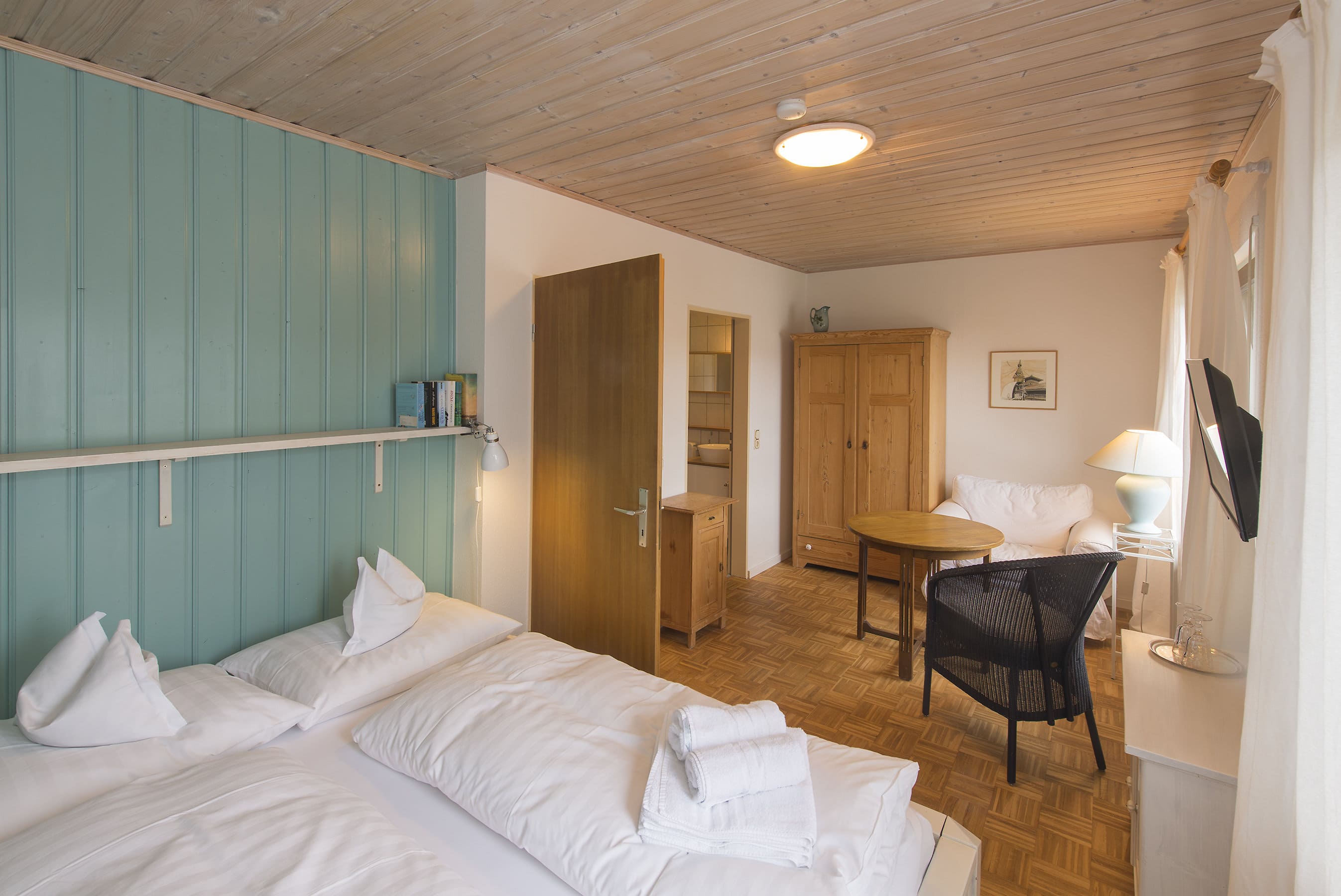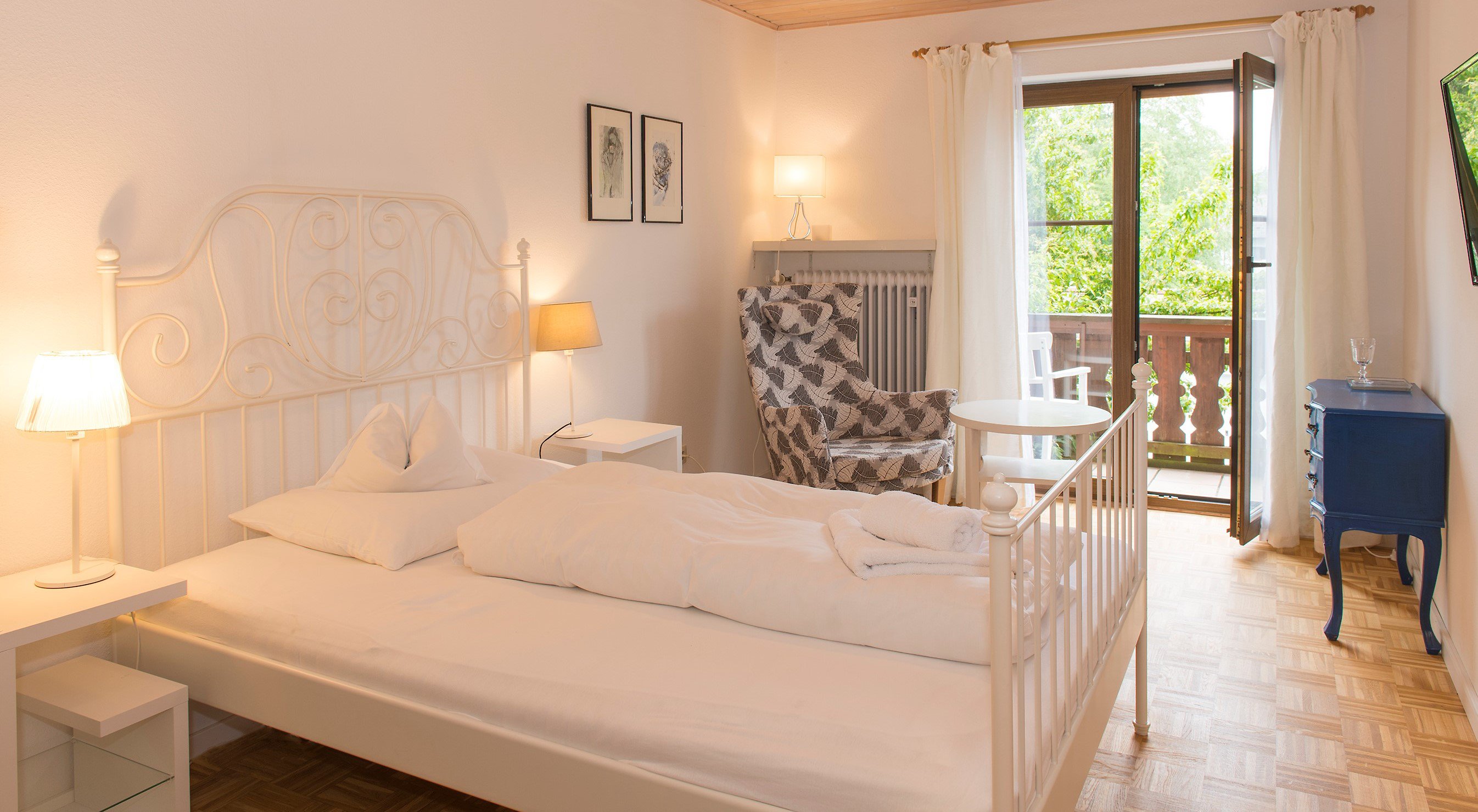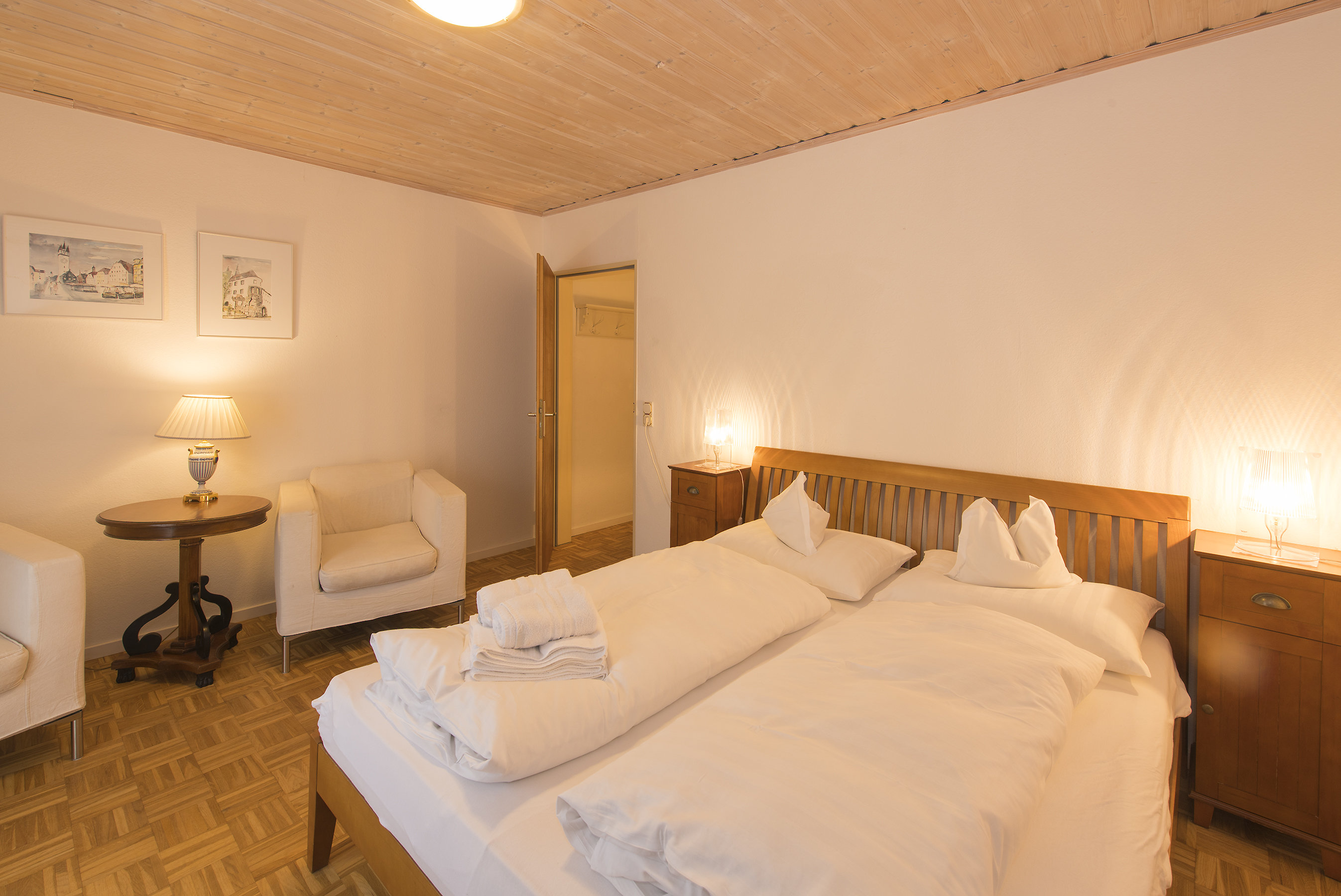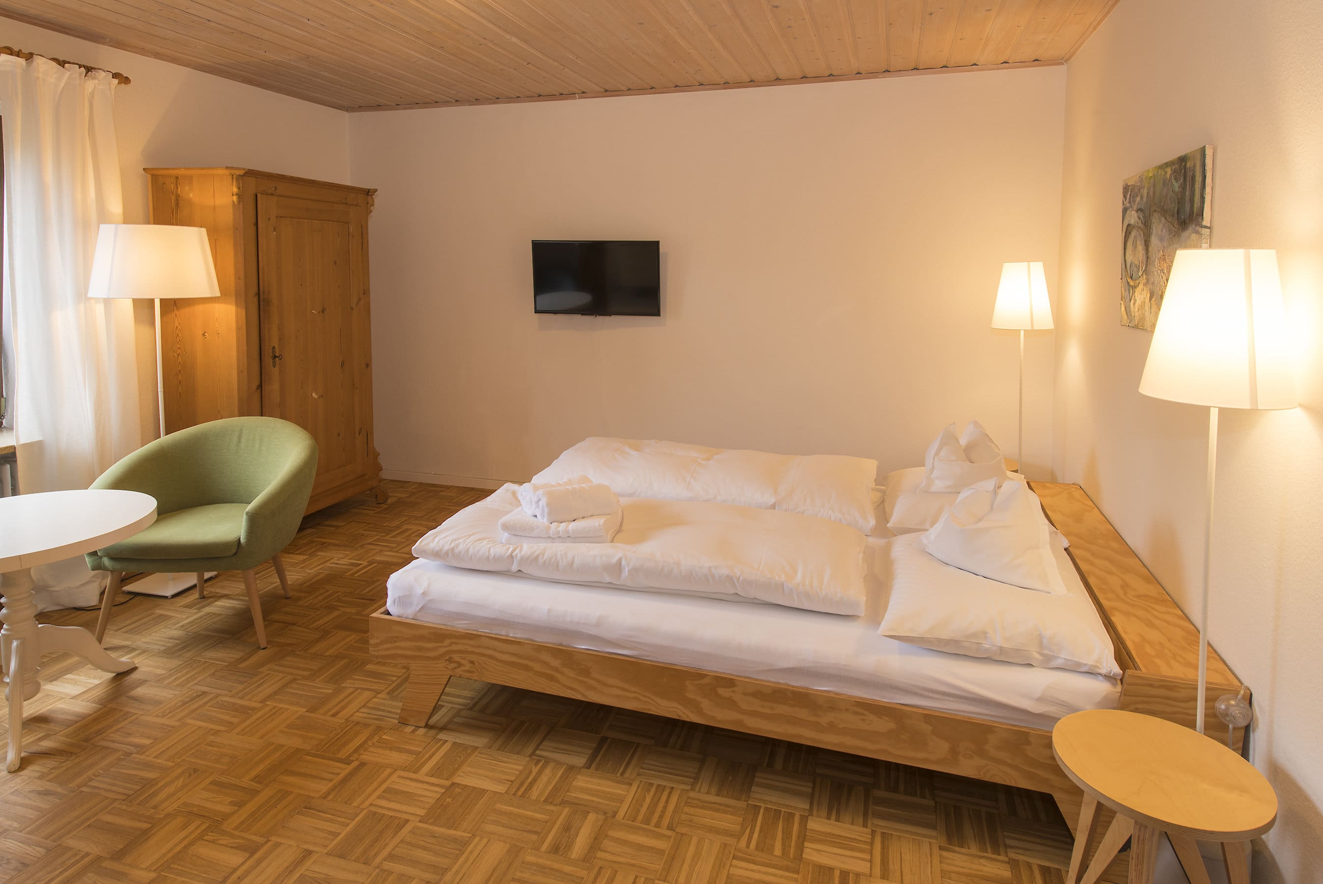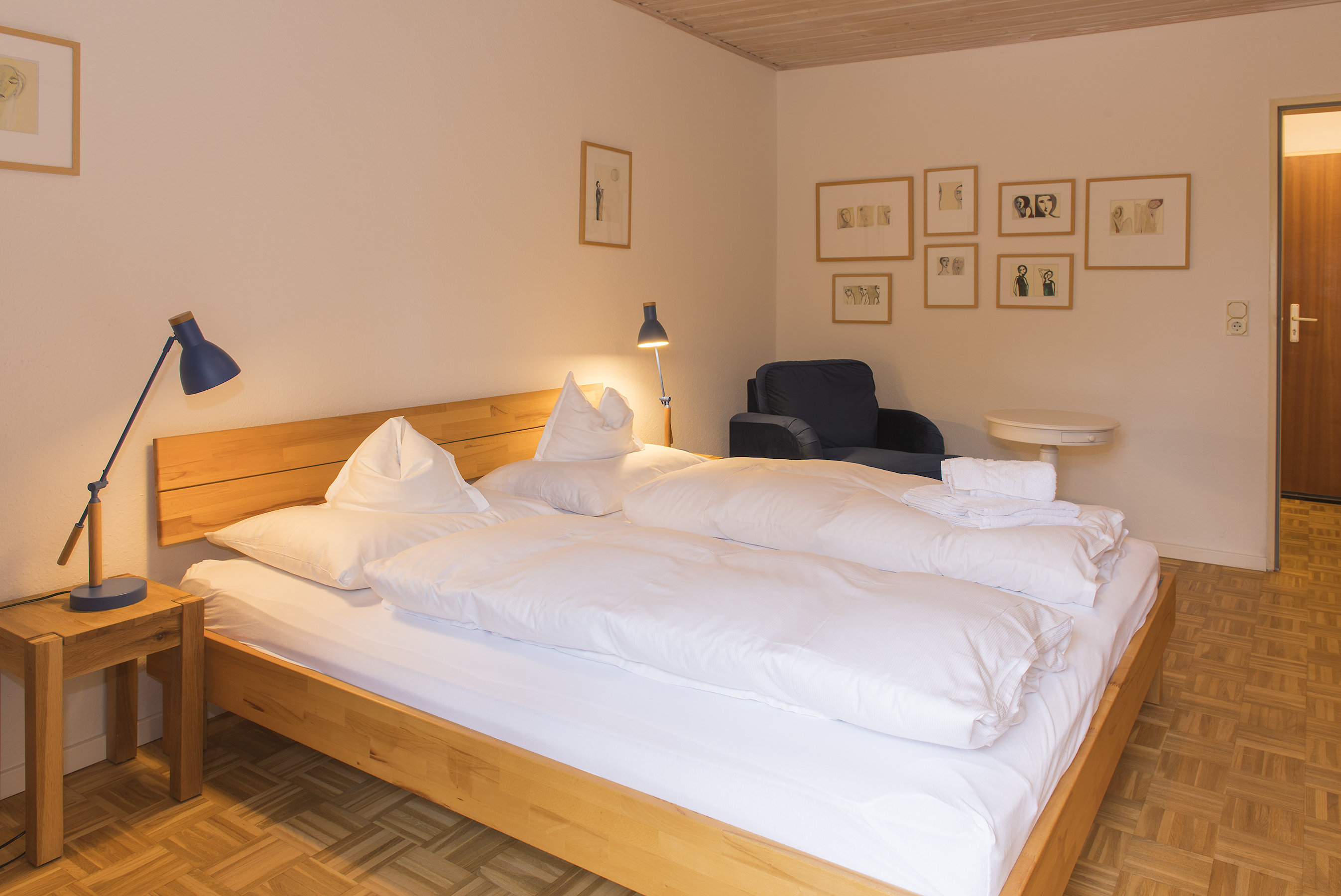 Eine Flasche Selterswasser steht als Willkommensgruß bereit, ebenfalls ein Döschen Ringelblumensalbe. Drei der Zimmer haben einen Balkon. Der Wirtin ist es zudem ein Anliegen, eine Wärmflasche bereitzulegen, die an kalten Wintertagen für gemütliche Wärme sorgt.
