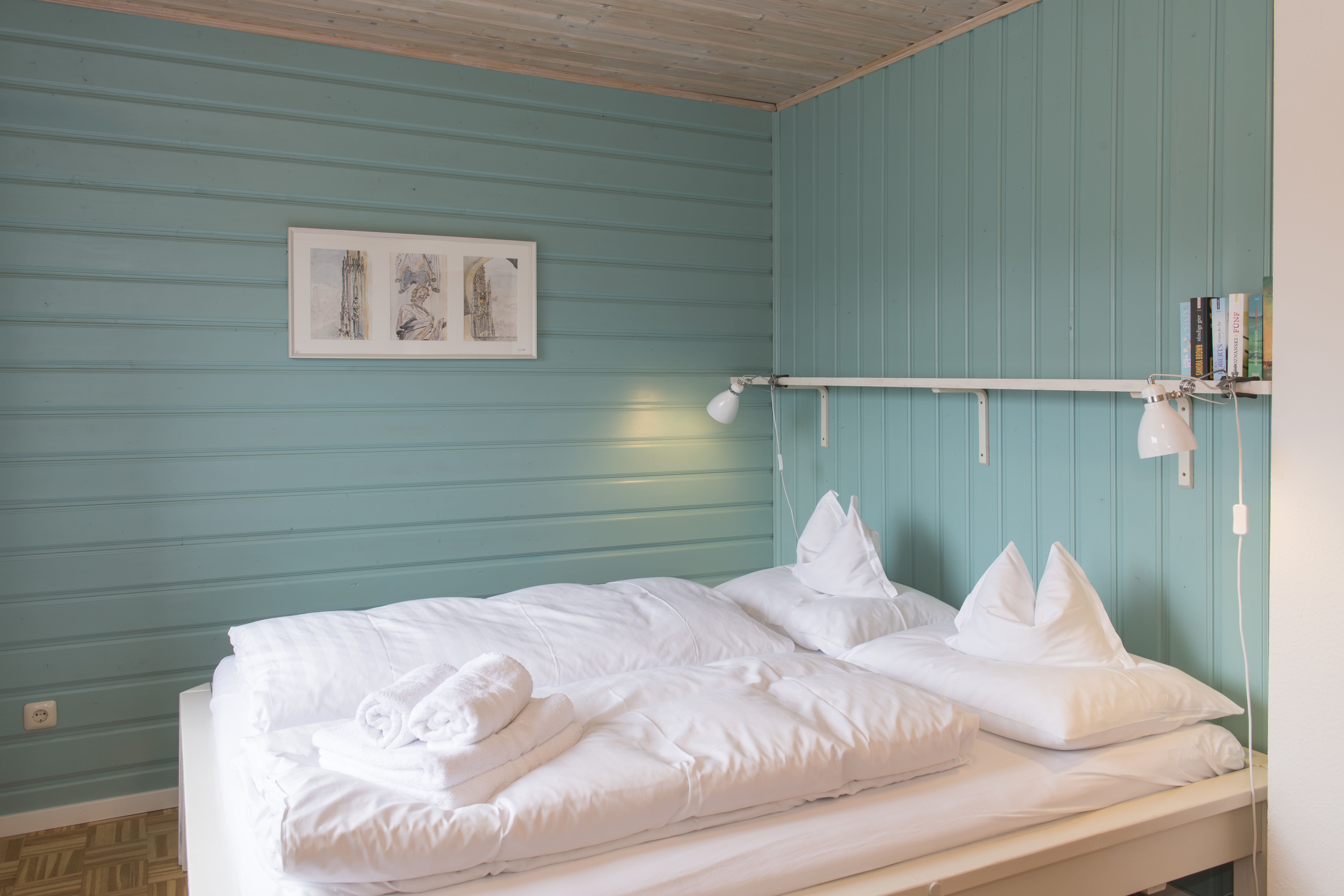- Ein Zimmer verfügt über ein kleines Bett (mit 1,40m Länge), Nutzung als Einzelzimmer möglich